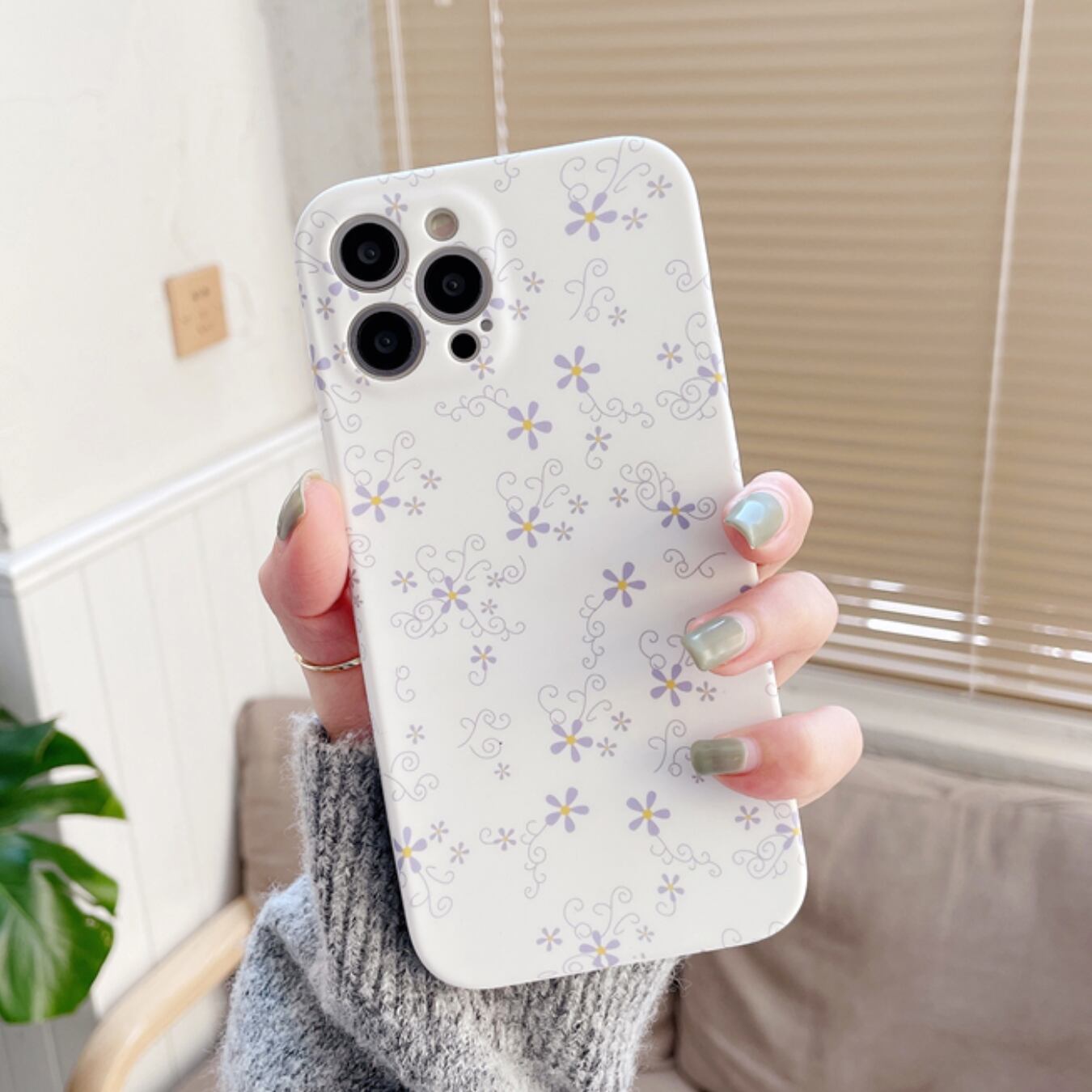 パープルフローラルフラワー iPhoneケース 【c136】